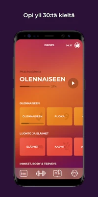 Olemme valikoineet huolellisesti yli 1700 käytännön sanaa yli sadasta eri aiheesta, jotka todella tulevat tarpeeseen matkustaessasi tai kommunikoidessasi uudella kielellä. Mutta Dropsin taika piilee siinä, että se on paljon enemmän kuin pelkkä "pelillistetty" sovellus; se on todellinen pelikokemus, joka on suunniteltu koukuttamaan sinut oppimiseen. Uppoudut maailmaan, jossa oppiminen tuntuu leikiltä, etkä aikaa tuhlaten vaan kerryttäen arvokkainta omaisuutta: uuden kielen taitoa. Valmistaudu löytämään oppimisen ilo uudelleen ja anna Dropsin viedä sinut kohti kielenhallintaa.